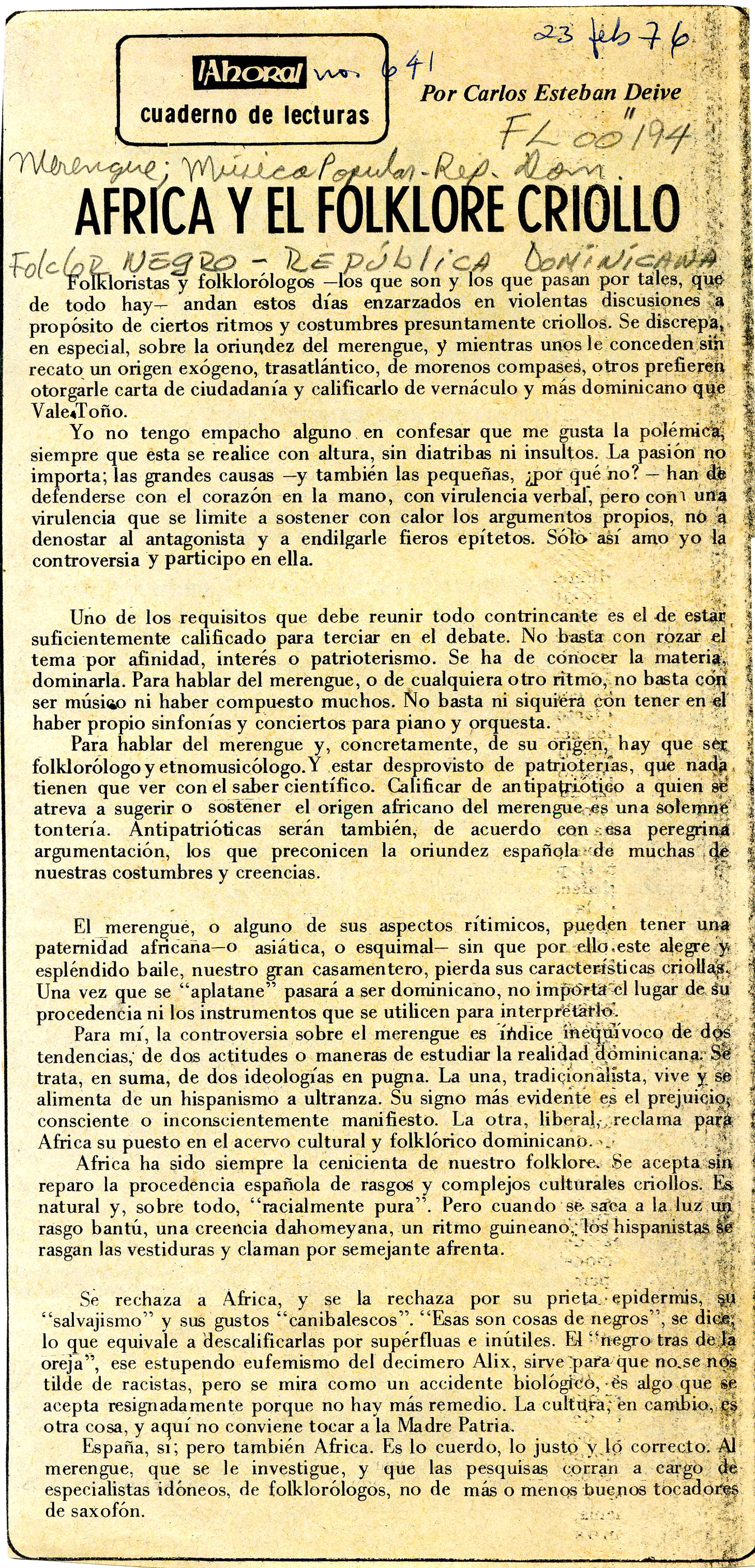 Ahora.-- Santo Domingo (23 de febrero, 1976)